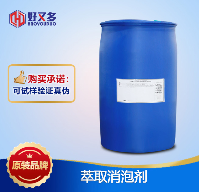 萃取消泡劑是專門用于常見的萃取劑如:磷酸二異辛酯 2-乙基己基磷酸 磷酸三丁酯 三辛烷基叔胺 銅萃取劑。當氣泡液膜表面接觸到消泡劑時,能迅速降低液膜的表面張力,從而使氣泡破裂而快速消泡。