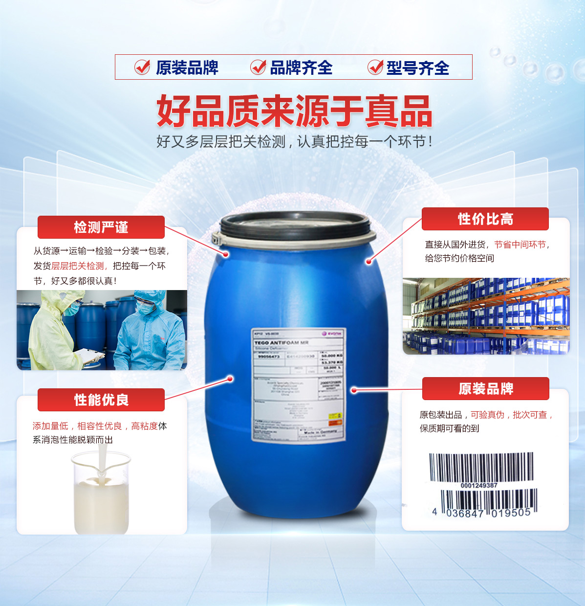 | 金屬加工液消泡劑 | 其稀釋液有很好的堿和電解質穩定性,甚至在高溫下也很穩定。 | 德國 | 30KG/60KG桶裝 | 24個月 |