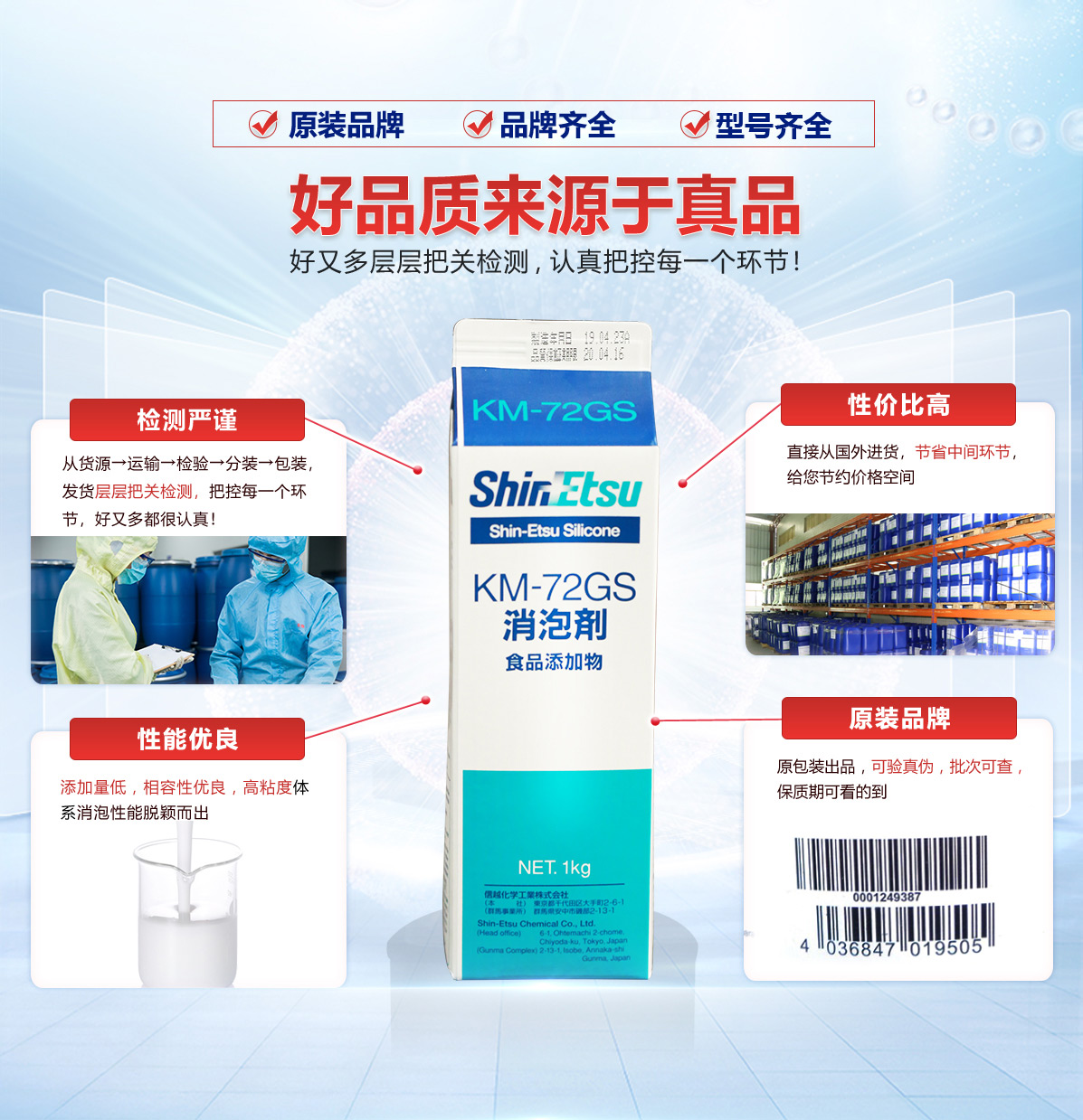產品介紹:日本信越KM-72GS是乳液型消泡劑,用于食品工業用(食品添加物)、發酵、它具有非常優良的消泡性。另外,KM-72GS乳液型消泡劑、耐高溫性好,也能夠在食品以外的一般發酵工業領域當中使用。